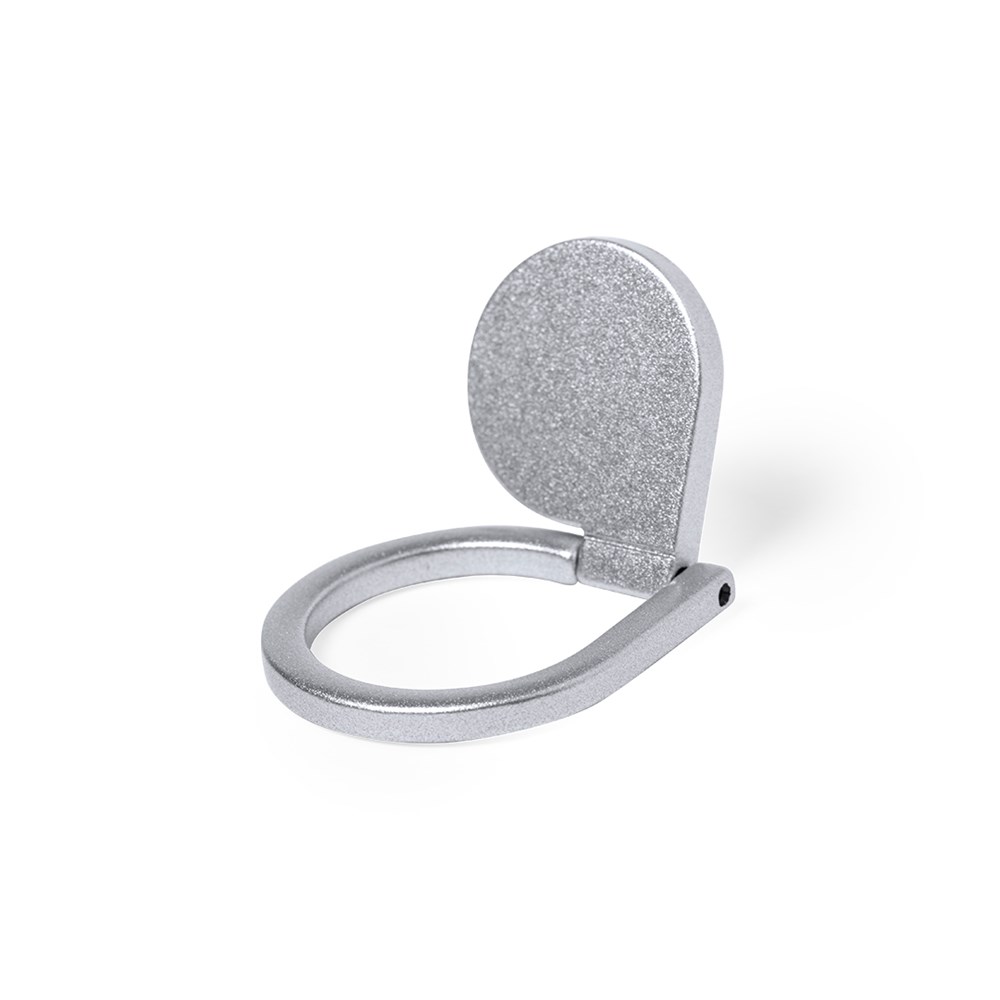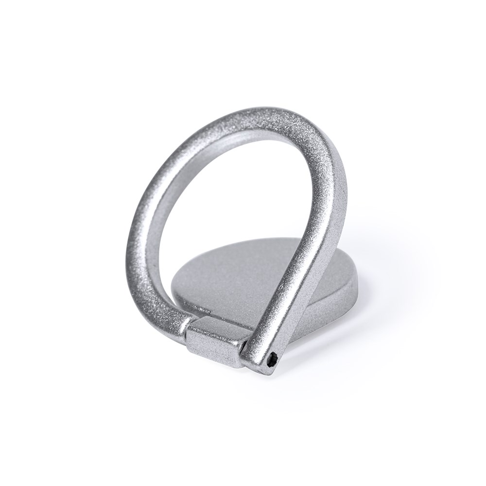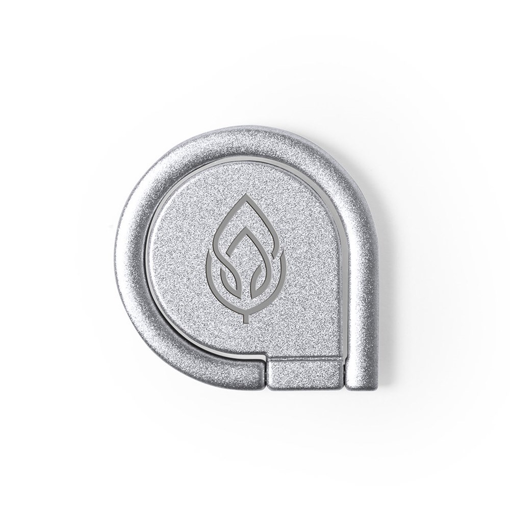 Metalen smartphonehouder in matte afwerking. Elegant design met 3M lijm, extra sterke bevestiging en residu-vrij bij verwijdering van het toestel. Met achterste ringhouder en gepresenteerd in een individueel design tasje.