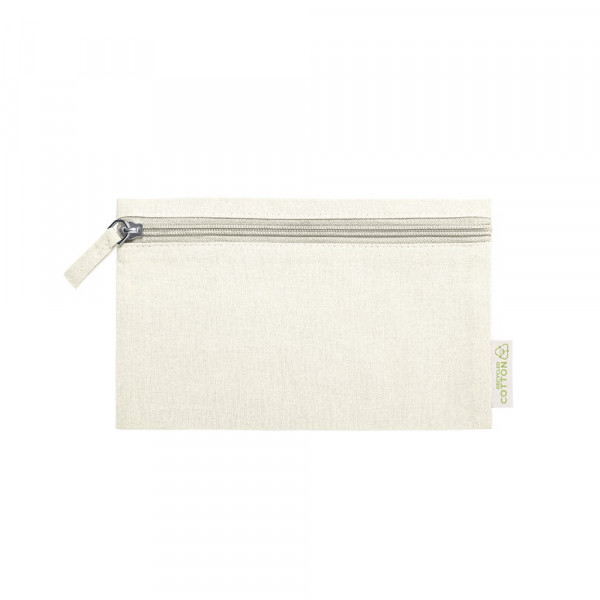 Natuurlijn toilettas gemaakt van gerecycled katoen. Hoofdvak met rits en bijpassende trekker, met gerecycled katoen als kenmerk in het label.