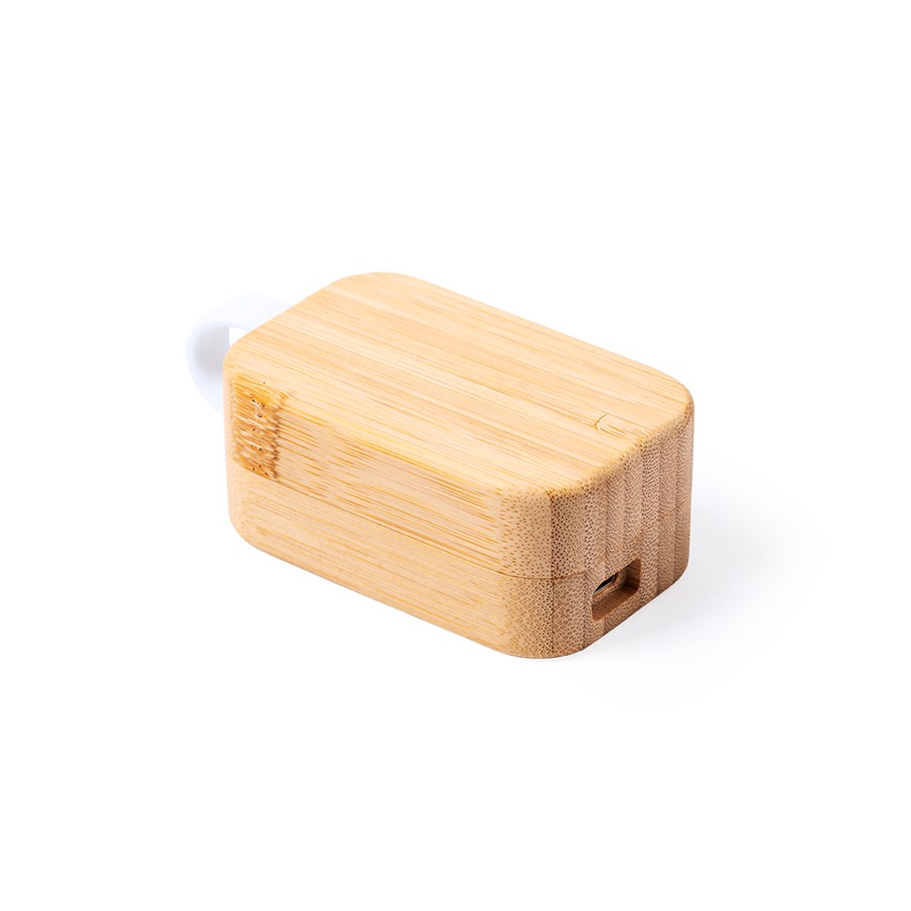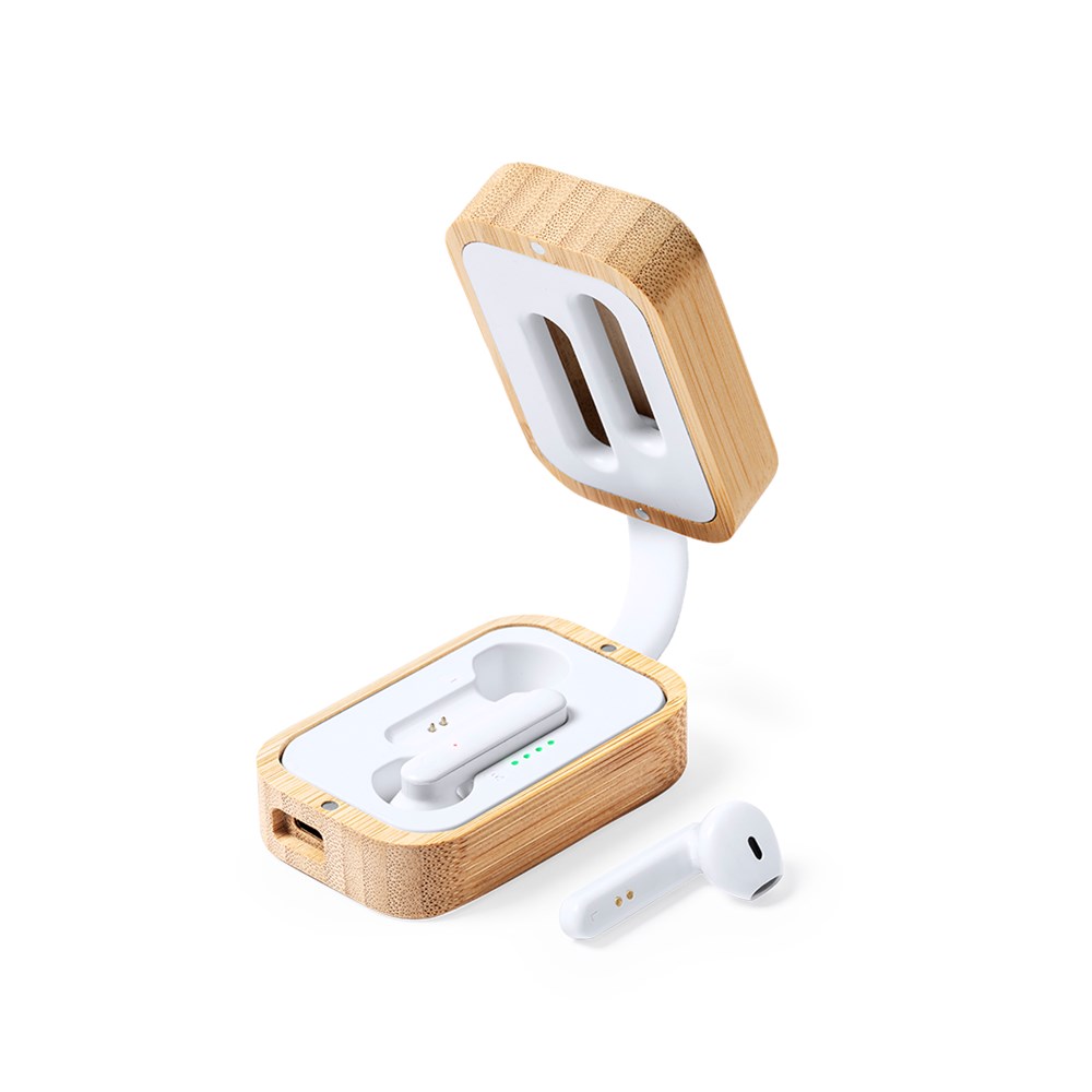 Natuurlijn oortelefoon, met Bluetooth® 5.0-verbinding en lithiumbatterij. In elegante witte afwerking en gepresenteerd in een bamboe oplaadetui. Ergonomisch ontworpen, inclusief een geïntegreerde aanraaktoets, met een bijpassende oplaadbasis en LED-oplaadindicator. Handsfree-functie en oplaadbaar, met micro USB-kabel inbegrepen. Gepresenteerd in aantrekkelijke eco ontwerpdoos.