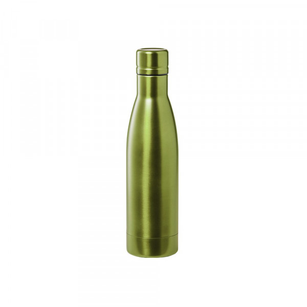 Dubbellaagse roestvrijstalen thermische fles van 500 ml. Vervaardigd met dubbellaagse en vacuüm koperisolatie, waardoor de warmte en kou lange tijd behouden blijven, respectievelijk 12 en 48 uur. Met schroefdop voor een perfecte afdichting. Met metallic afwerking en verkrijgbaar in een breed scala aan kleuren. Gepresenteerd in een aantrekkelijke designdoos.