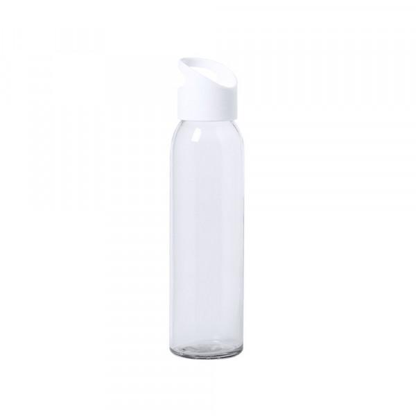 Fles met een inhoud van 470 ml. Gemaakt van glas en verkrijgbaar in een groot aantal kleuren. Schroefdop in bijpassende kleur in PP, BPA-vrij. Gepresenteerd in een individuele doos met een aantrekkelijk ontwerp.
