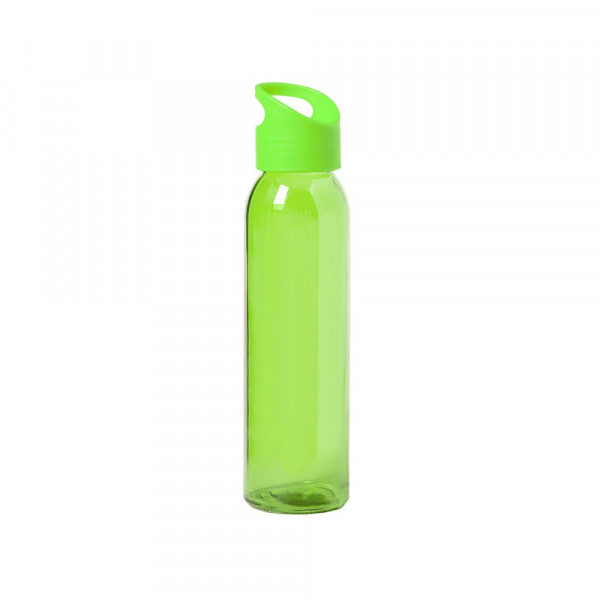 Fles met een inhoud van 470 ml. Gemaakt van glas en verkrijgbaar in een groot aantal kleuren. Schroefdop in bijpassende kleur in PP, BPA-vrij. Gepresenteerd in een individuele doos met een aantrekkelijk ontwerp.