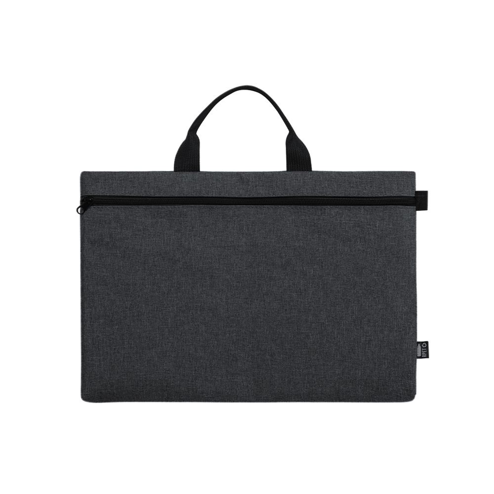 Documenthouder van natuurlijn en in resistent 600D RPET gemêleerd effect, gemaakt van gerecycleerd plastic om het hergebruik van plastic afval te bevorderen en bij te dragen tot de duurzaamheid van de planeet. Zwarte details en hoofdvak met rits. Duurzame handgrepen in bijpassende kleur en RPET-onderscheidingsteken op het etiket aan de buitenkant.