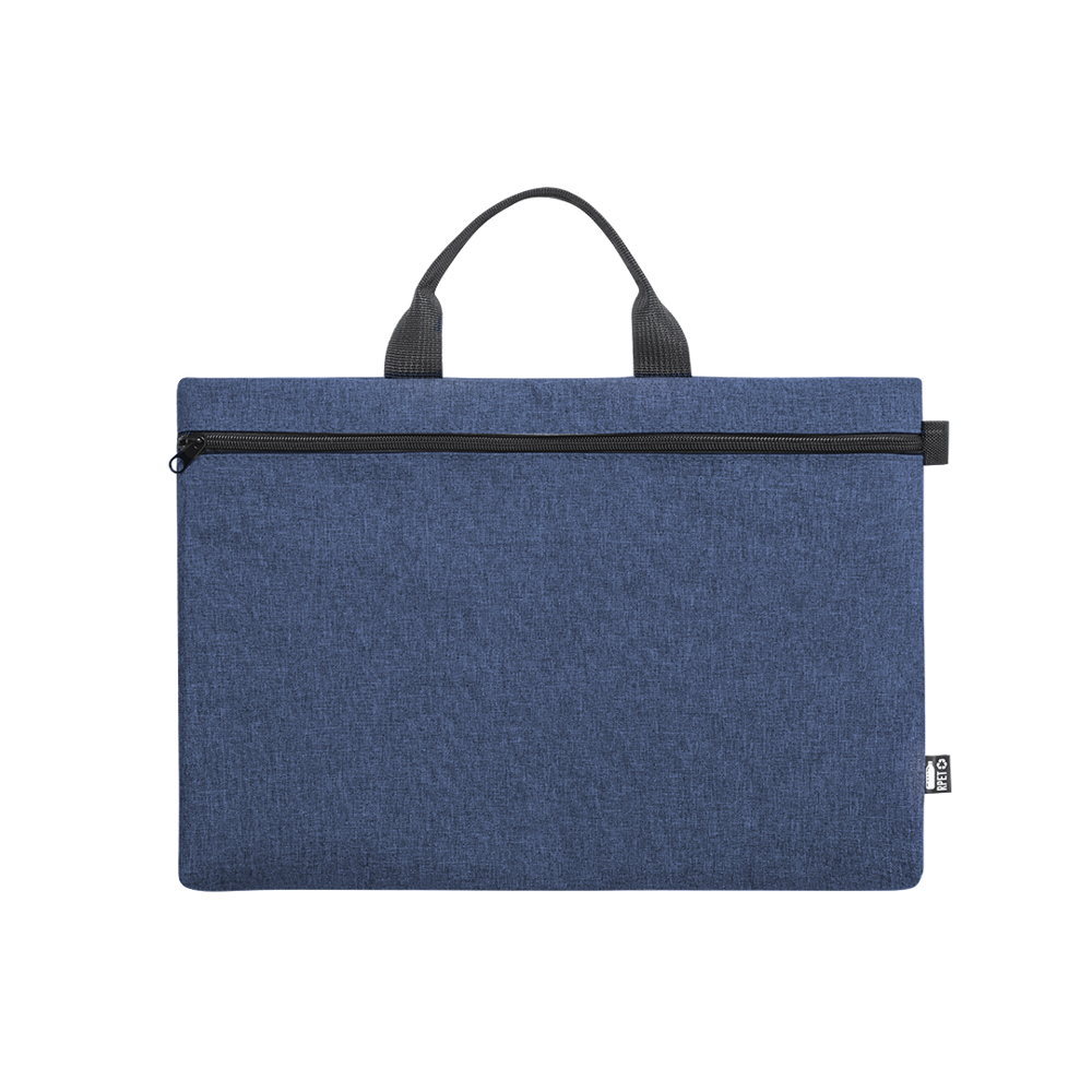 Documenthouder van natuurlijn en in resistent 600D RPET gemêleerd effect, gemaakt van gerecycleerd plastic om het hergebruik van plastic afval te bevorderen en bij te dragen tot de duurzaamheid van de planeet. Zwarte details en hoofdvak met rits. Duurzame handgrepen in bijpassende kleur en RPET-onderscheidingsteken op het etiket aan de buitenkant.
