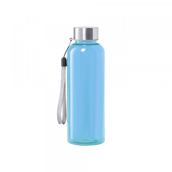 Fles met een inhoud van 500 ml. BPA-vrij, met behuizing van transparant tritan en hoge hittebestendigheid. Schroefdop in roestvrij staal, met transportkoord. Verkrijgbaar in een brede waaier van kleuren.