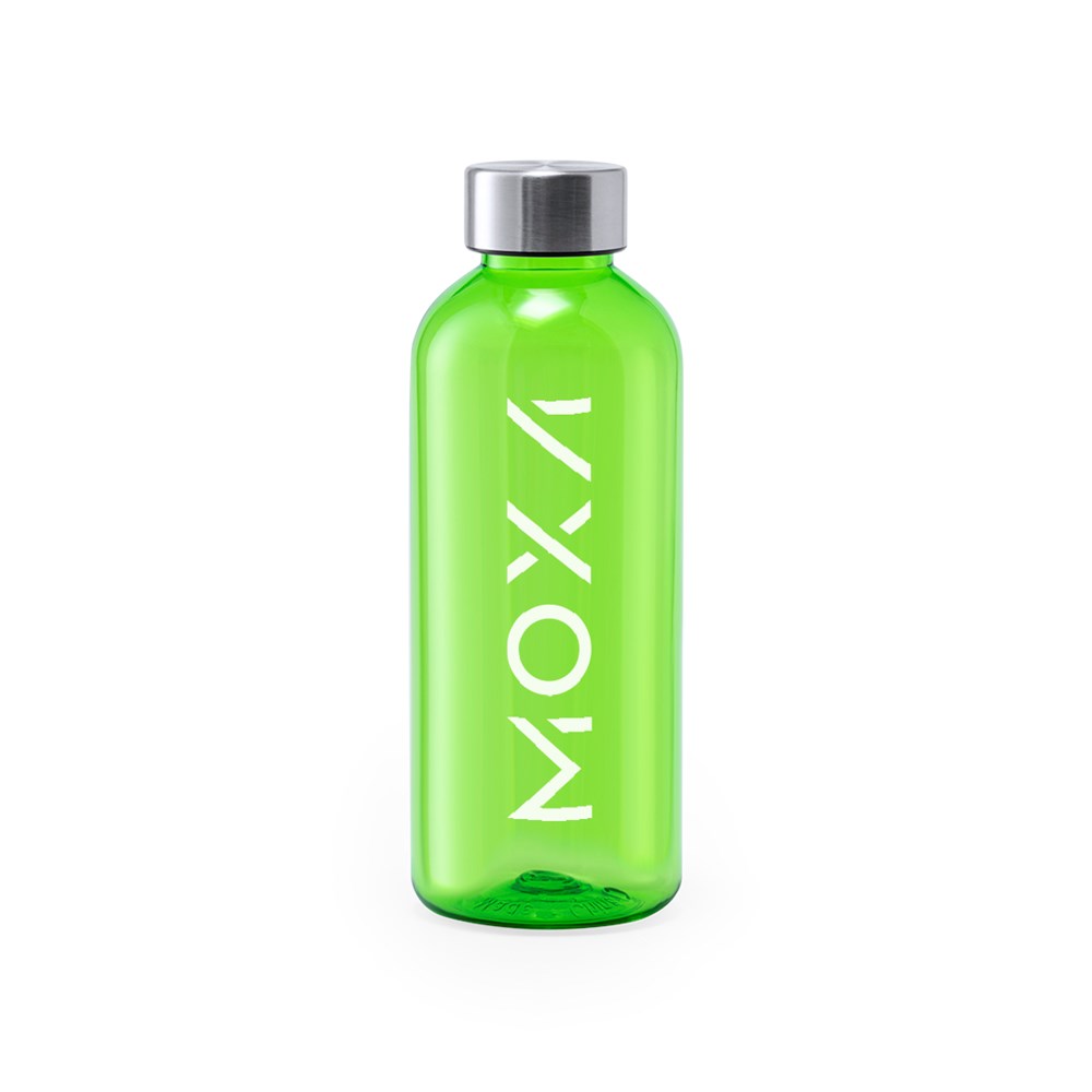 Fles met een inhoud van 600 ml. BPA-vrij, met behuizing van transparant tritan en hoge hittebestendigheid. Schroefdop van roestvrij staal. Verkrijgbaar in een brede waaier van kleuren.