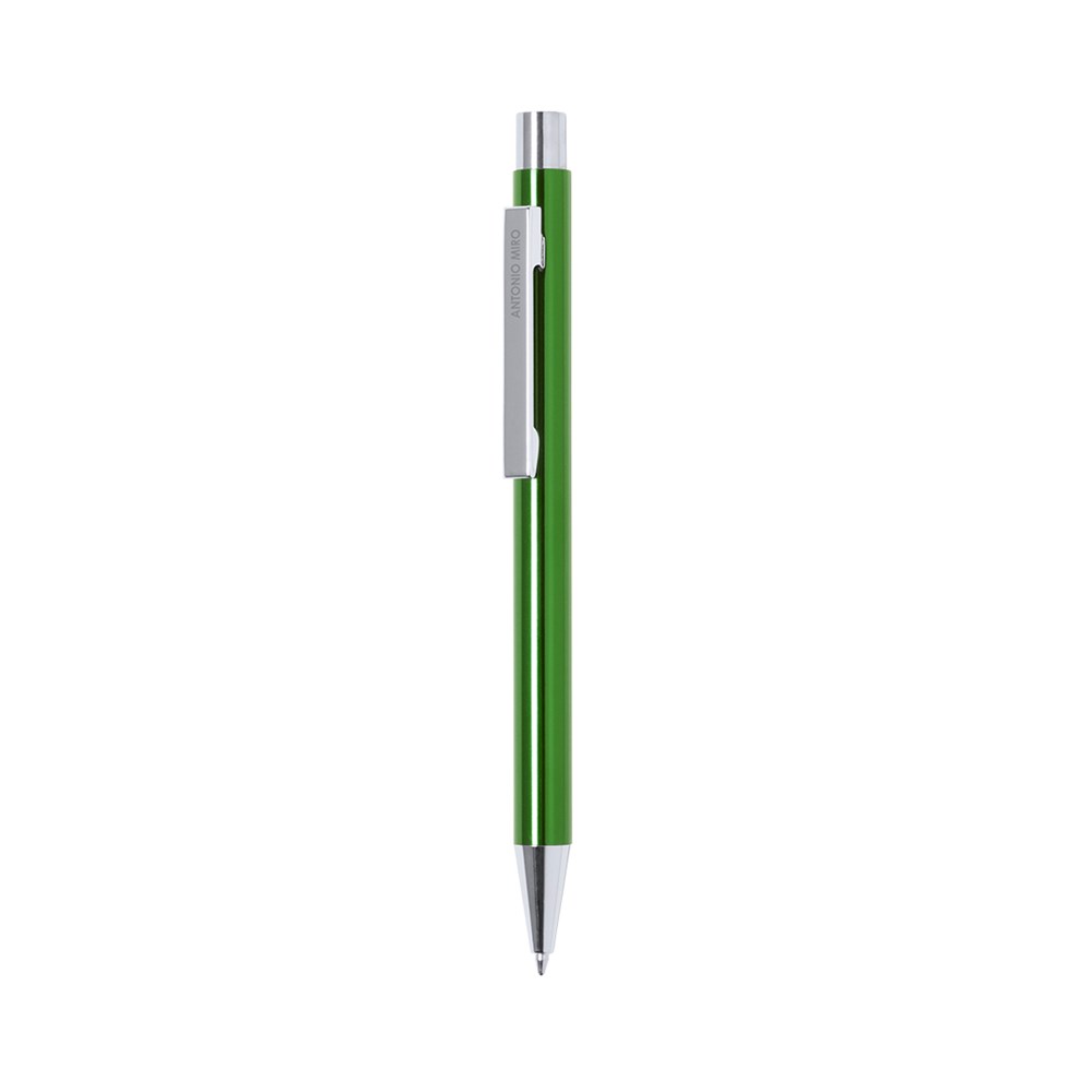 Balpen van Antonio Miró met aluminium behuizing in een breed scala aan heldere tinten en zilverkleur. Opdrukmechanisme en gepresenteerd in tas met het merklogo. Blauwe inkt.