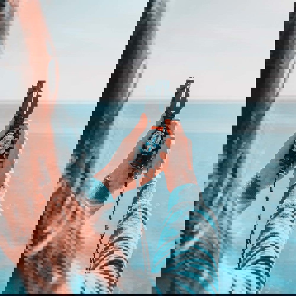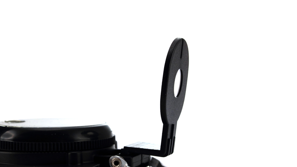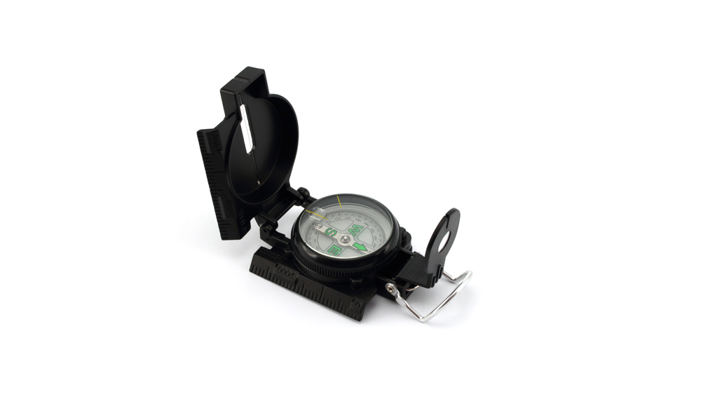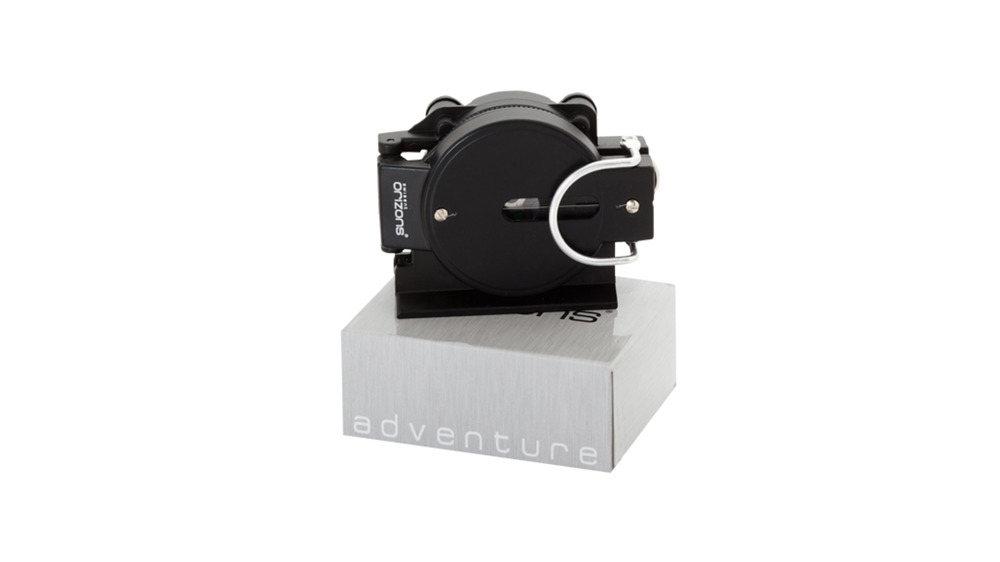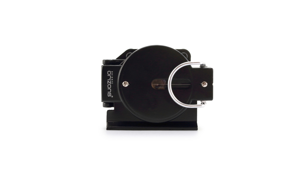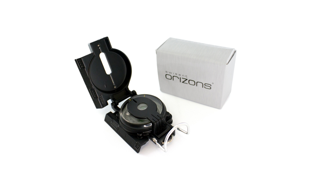 Orizons kompas met hoge precisie van bestendig aluminium, met bevestigingsaccessoire en gepresenteerd in een aantrekkelijke designdoos met het merklogo.