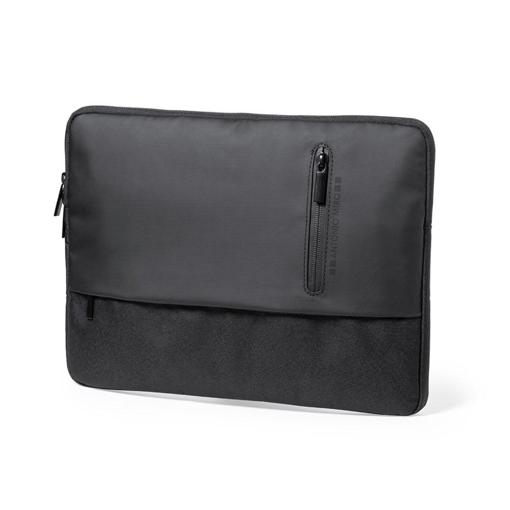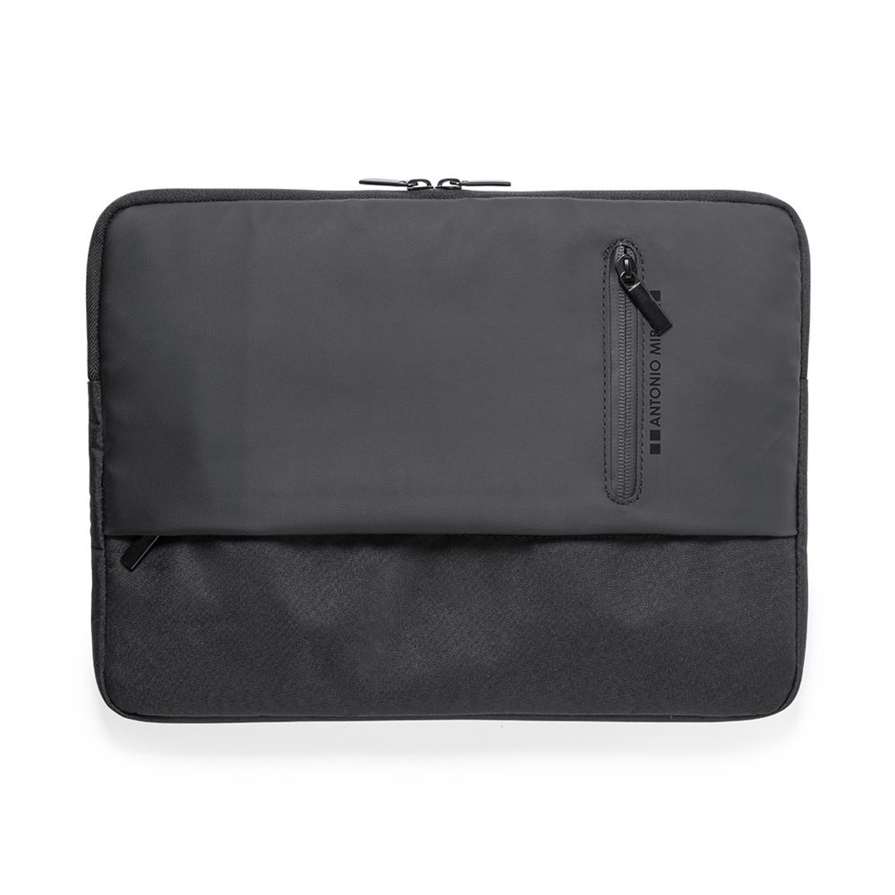 Antonio Miró computer hoes in premium kwaliteit, gemaakt van duurzaam 600D polyester. Met een sober design en gewatteerd laptopvak voor laptops tot 15 inch. Ritssluiting met metalen trekkers en voorvak. Merklogo aan de voorkant.