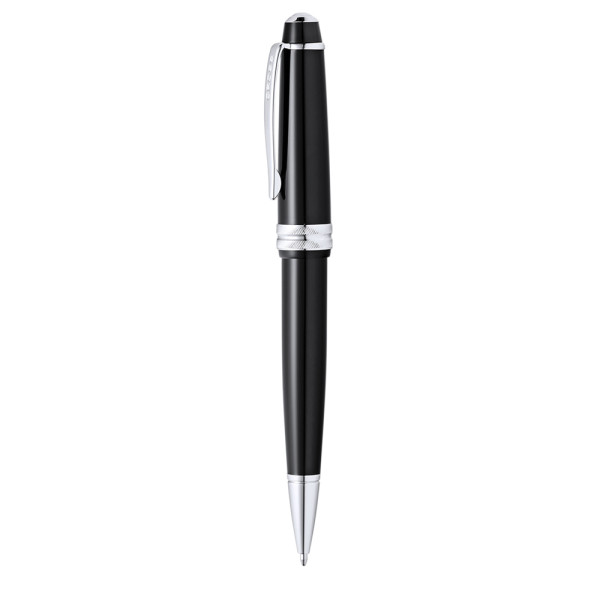 Balpen Cross Bailey Licht, een combinatie van een hoogglanzende hars met een gepolijste chromen, metallic afwerking. Jumbo patroon in zwarte inkt. Gepresenteerd in een elegant individueel zwart etui met merklogo en zachte suède voering.