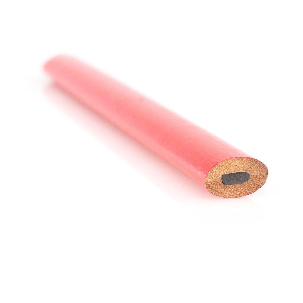 Houten timmermanspotlood in glanzende afwerking. Met platte stift en verkrijgbaar in een brede waaier van kleuren. Zwarte stift en ongeslepen punt.