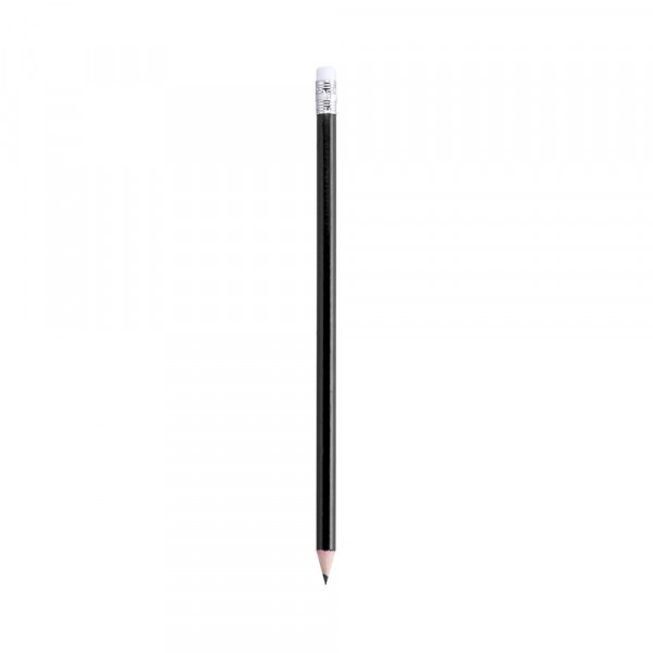 Houten potlood met glanzende afwerking. Met ronde loop en wit gekleurd rubber. Verkrijgbaar in een groot aantal kleuren. Zwarte kleurige stift en geslepen punt.