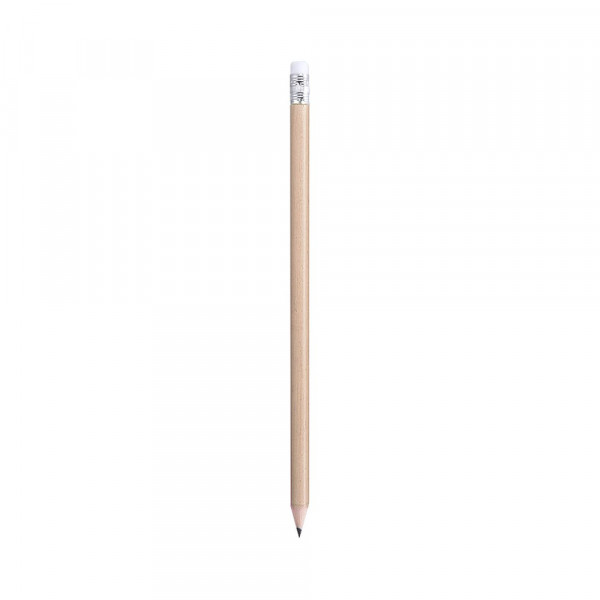 Houten potlood met glanzende afwerking. Met ronde loop en wit gekleurd rubber. Verkrijgbaar in...meer
