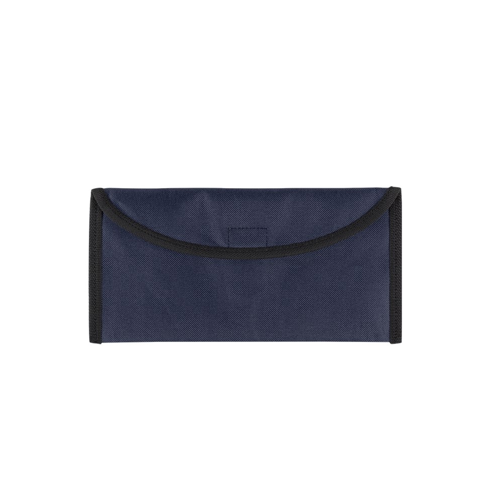 Reisdocumententas van resistent 600D polyester in diverse kleuren. Met klittenbandsluiting, gevoerd binnenwerk en riemaccessoire aan de achterkant.