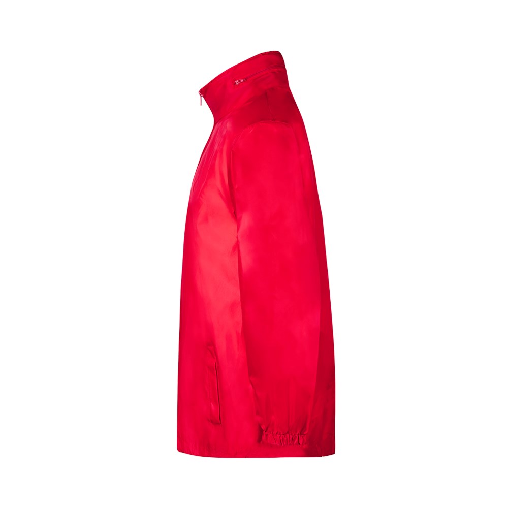 Regenjas van polyester 190T in gevarieerde kleurenen. Met ingebouwde capuchon op kraag met touwtjes achter ritssluiting. Hoofdsluiting met ritssluiting en steekzakken. Verkrijgbaar in de maten M-L, XL-XXL.