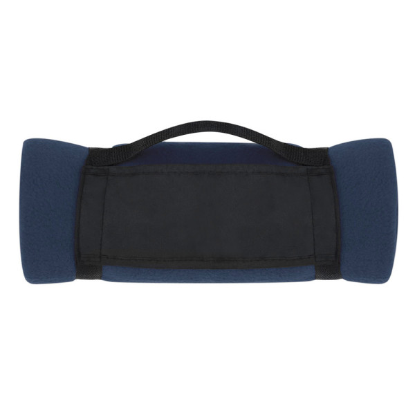 Deken van 130x160cm in gevarieerde kleuren. Van polar fleece materiaal 200 g / m2 met anti-pilling behandeling en handvat met klittenbandsluiting van zacht polyester.