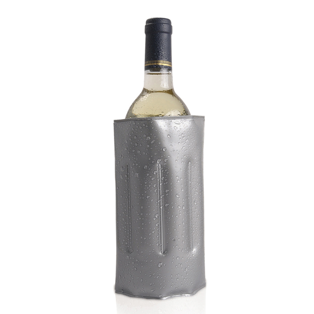 Flessenkoeler van duurzaam PVC, met verstelbare klittenbandsluiting. Vloeibare koelvloeistof binnenin en hitteverzegelde afwerking. Verkrijgbaar in een groot aantal kleuren.