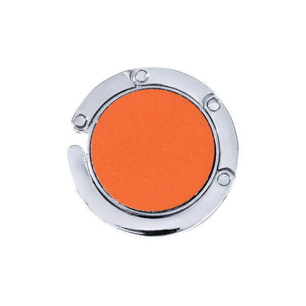 Opvouwbare metalen tashanger met lederen PU vlak in diverse kleuren. Gepresenteerd in een individuele doos met gestanste binnenkant.