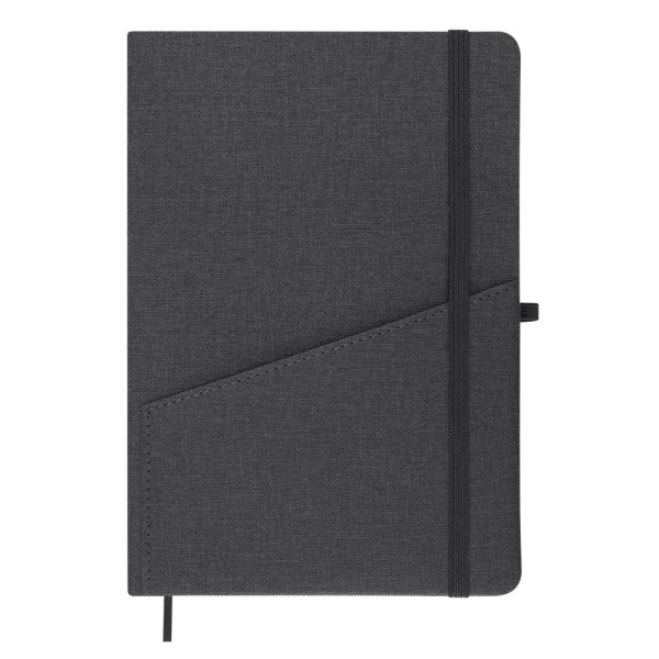 Notitieboek met harde kaft van gerecycled PU met linnen afwerking. Met praktisch voorvak,...meer