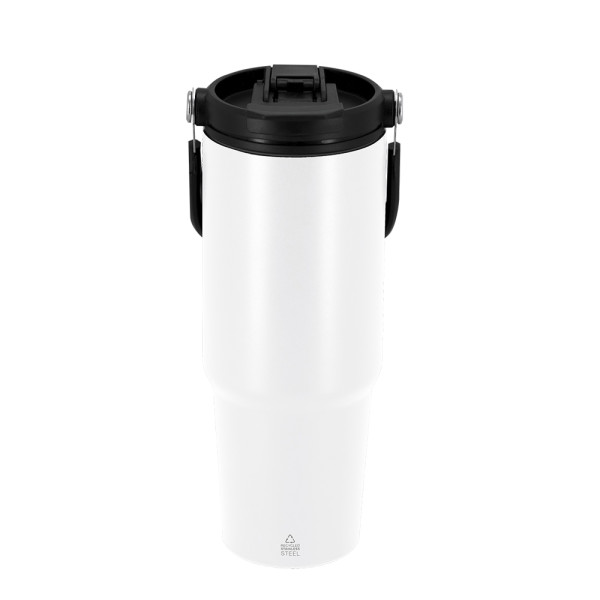 Isolerende beker met een capaciteit van 900 ml. Gemaakt van gerecycled roestvrij staal. Voorzien van een dubbel drinksysteem: tuit met hermetische sluiting en geïntegreerd rietje, aangepast aan de gebruiksvoorkeuren. Met hermetisch afsluitend deksel. Inclusief praktische draaghendel, ideaal om hem overal gemakkelijk mee te nemen. BPA-vrij. Met embleem van gerecycled roestvrij staal. Staal is een van de meest gevraagde materialen en is vrijwel overal te vinden, van alledaagse producten tot grote constructies. Met talloze eigenschappen, waarvan duurzaamheid en een hoge mate van herbruikbaarheid de belangrijkste zijn, is het een zeer gewaardeerd alternatief in duurzaamheidsoplossingen. Bij correcte verwerking maakt het de creatie van nieuwe, eindeloos bruikbare grondstoffen mogelijk.