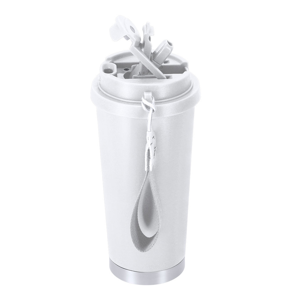 Isolerende beker met een capaciteit van 500 ml. Gemaakt van gerecycled roestvrij staal. Voorzien van een dubbel drinksysteem: tuit met hermetische sluiting en geïntegreerd rietje, aangepast aan de gebruiksvoorkeuren. Met hermetisch afsluitend deksel. Inclusief praktische draagriem, ideaal om hem overal gemakkelijk mee te nemen. BPA-vrij. Met embleem van gerecycled roestvrij staal. Staal is een van de meest gevraagde materialen en is vrijwel overal te vinden, van alledaagse producten tot grote constructies. Met talloze eigenschappen, waarvan duurzaamheid en een hoge mate van herbruikbaarheid de belangrijkste zijn, is het een zeer gewaardeerd alternatief in duurzaamheidsoplossingen. Bij correcte verwerking maakt het de creatie van nieuwe, eindeloos bruikbare grondstoffen mogelijk.