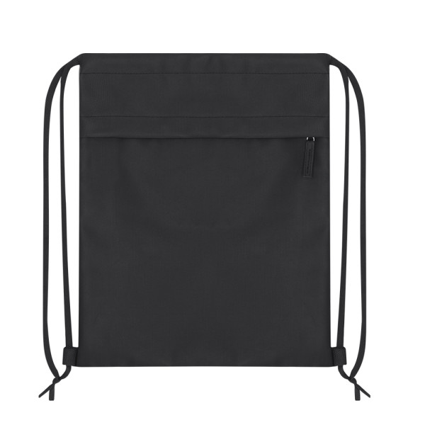 Trekkoordrugzak gemaakt van zacht PU gecombineerd met stevig 600D polyester. Voorzien van een functioneel voorvak met ritssluiting en bijpassende PU-trekker.