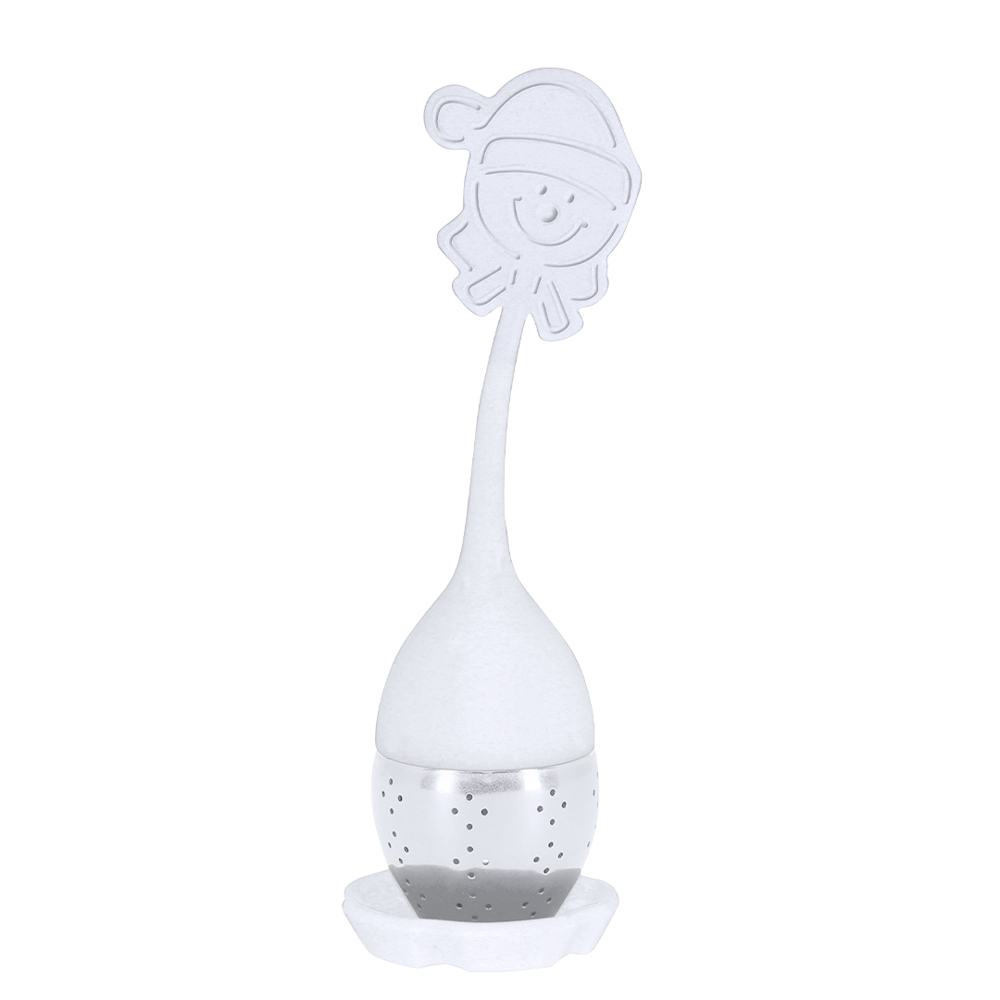 Thee-infuser met kerstontwerp, gemaakt van siliconen en roestvrij staal. Wordt geleverd met siliconen onderzetter, ideaal om de infuser na gebruik op te plaatsen, voorkomt druppels en houdt het oppervlak schoon.