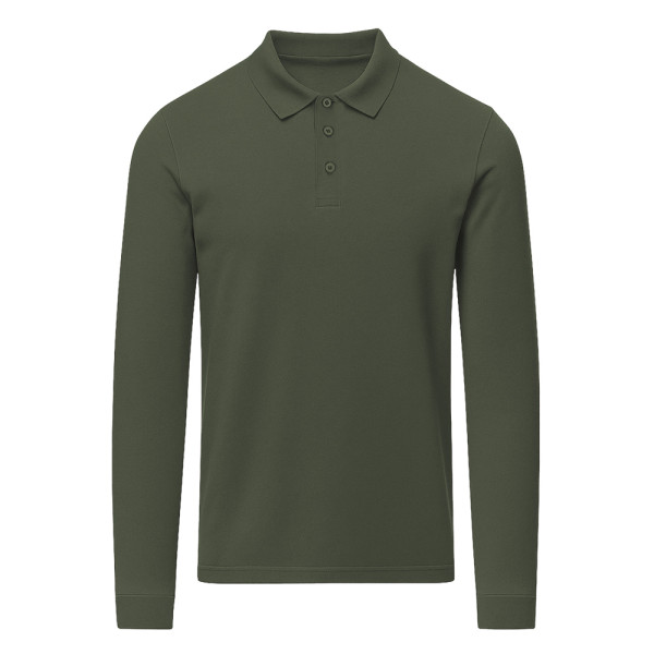 Unisex poloshirt met lange mouwen, gemaakt van piquéstof. Kraag en boorden in 1x1 rib met elastaan voor betere pasvorm en comfort. Sluiting met drie knopen in bijpassende kleur en verstevigde nektape.