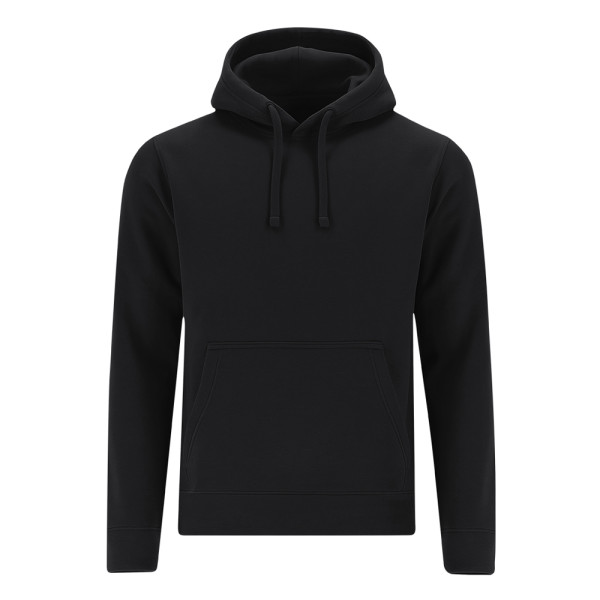 Sweatshirt met gevoerde capuchon in bijpassende dubbele stof. Gemaakt van katoen en polyester in zacht geruwd fleece 280 g/m. Voorzien van kangoeroezak, verstelbaar trekkoord met bijpassende metalen oogjes, verstevigd nektape en manchetten en tailleband in 1x1 ribtricot met elastaan voor betere pasvorm en comfort.