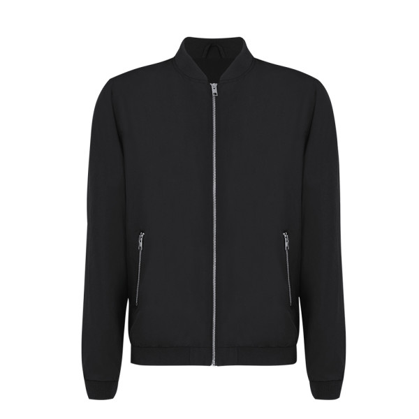 Trendy en lichtgewicht bomberjack met baseballkraag. Gemaakt van warm polyester met binnenvoering, wind- en waterafstotend. In stijlvolle marineblauwe en bruine kleuren, met ritsen in chroomstijl aan de voorkant en zakken. Elastische manchetten en zoom. Maten XS, S, M, L, XL, XXL.