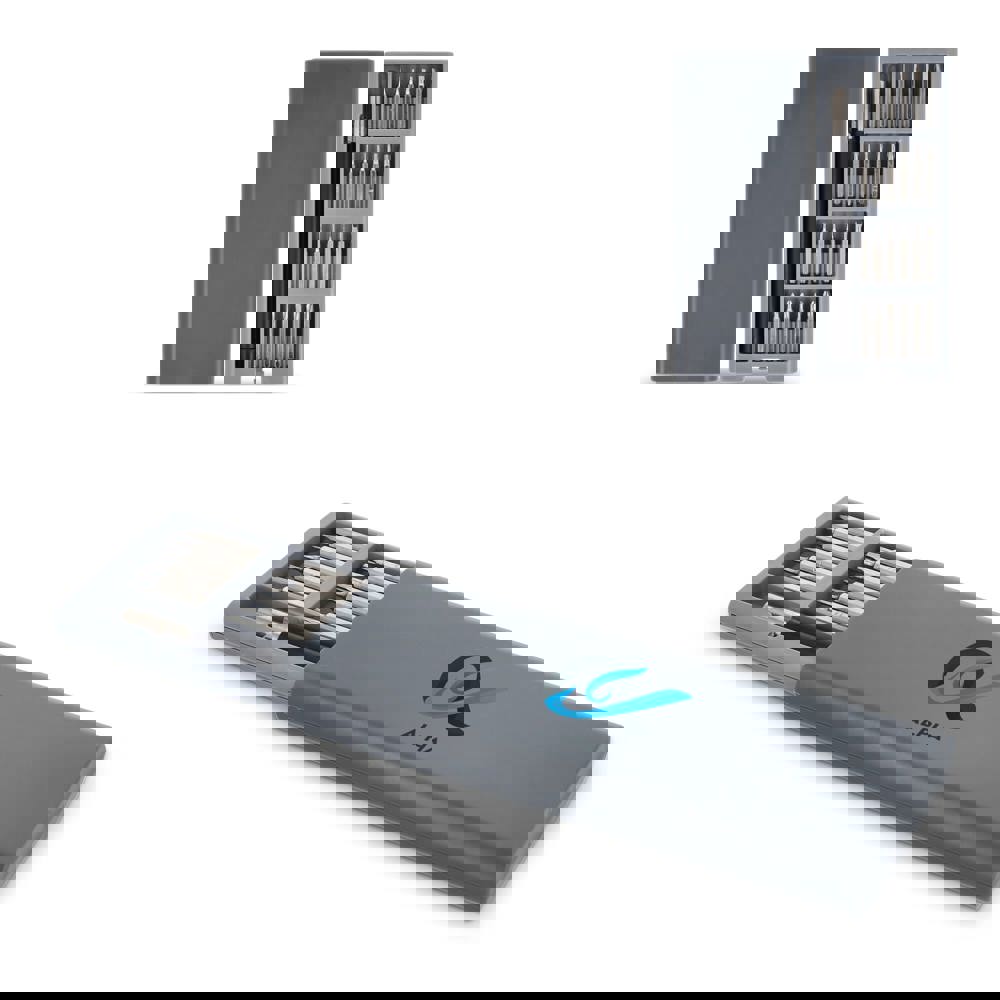Deze 24-delige precisie-toolset is ideaal voor het repareren van telefoons, laptops, horloges en andere elektronica. De compacte set bevat 24 duurzame stalen bitjes in diverse maten en vormen, perfect georganiseerd in een handige houder. Zo heb je altijd de juiste tool bij de hand.