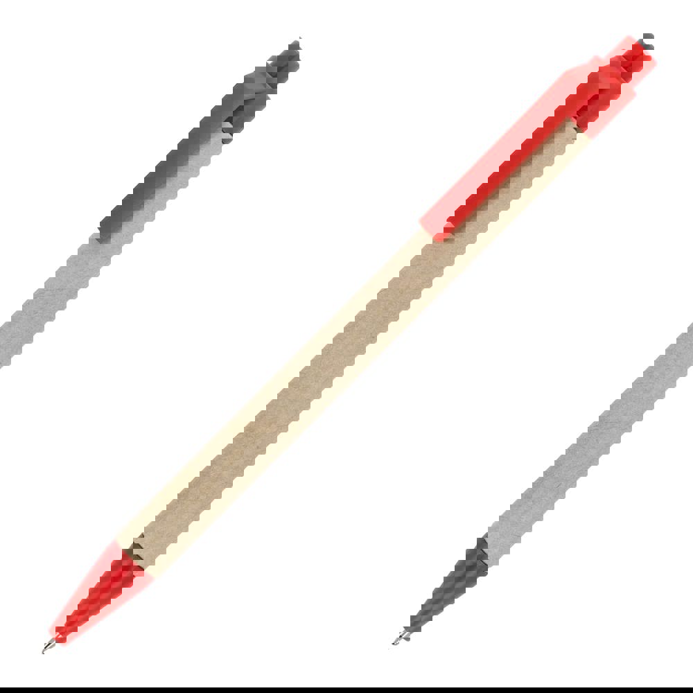 Balpen van papier met gekleurde kunststof onderdelen van gerecycled materiaal. Met blauwe schrijvende vulling.