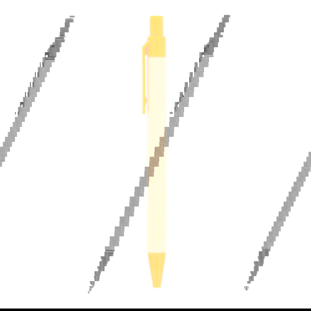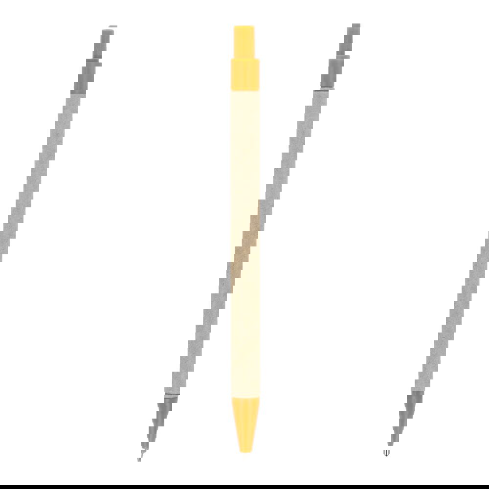 Balpen van papier met gekleurde kunststof onderdelen van gerecycled materiaal. Met blauwe schrijvende vulling.