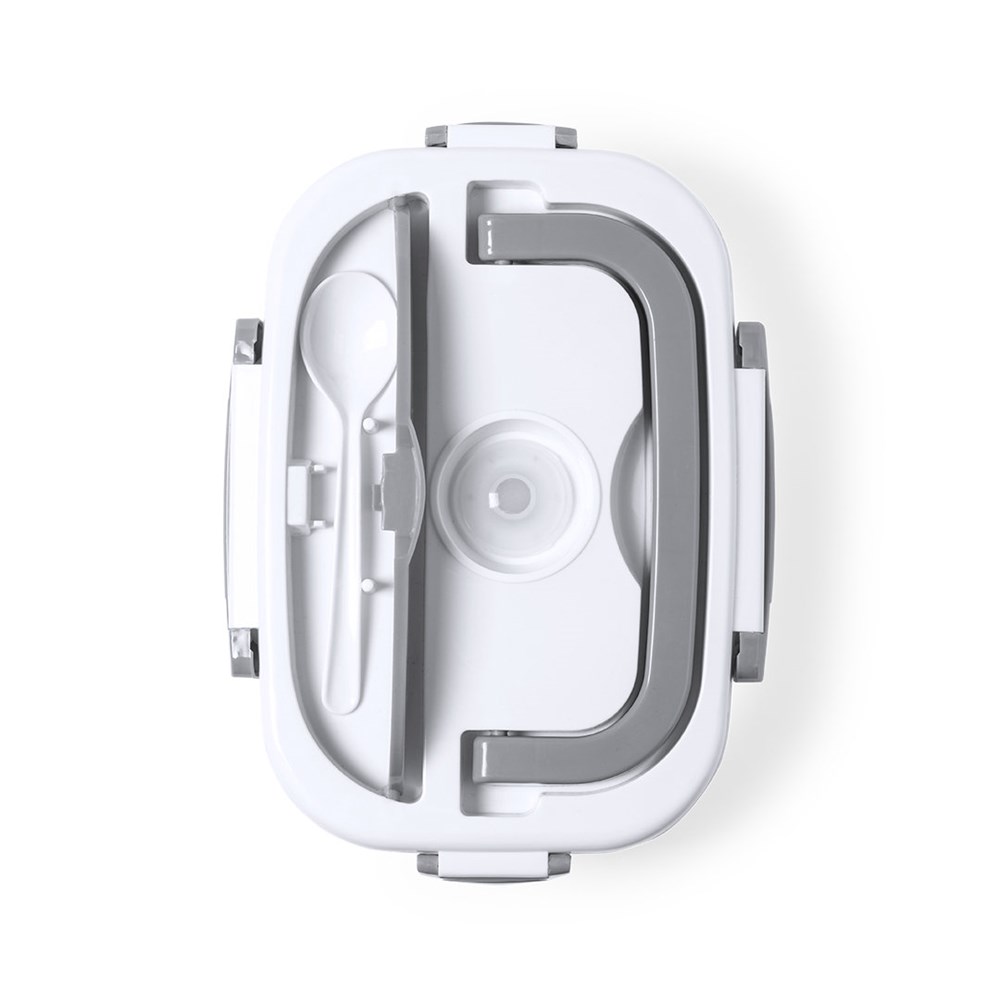 Elektrische lunchbox met 1l inhoud. Vervaardigd uit bestendig BPA-vrij ABS en in een tweekleurig design. Inclusief praktische draaggreep en waterdicht deksel met zijdelingse veiligheidssluiting. 2 hoofdcompartimenten en extra compartiment met hermetische sluiting. Inclusief lepel, met voedingskabel voor Europese stekker. Ideaal voor het opwarmen van voedsel op kantoor. Gepresenteerd in een aantrekkelijke ontwerpdoos.