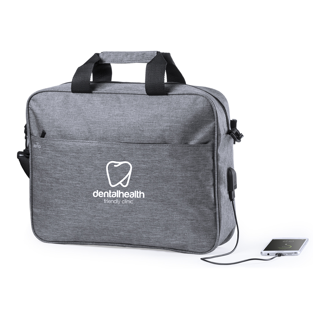 Documententas gemaakt voor gebruik in de stad. Binnenzak met RFID (Radio Frequency Identification) beveiligingstechnologie die gegevens van (bank)kaarten en andere apparaten veilig houdt. Beschermde handgrepen en hoofdvak met ritssluiting. Met USB-aansluiting - powerbank niet inbegrepen en binnen, gevoerde vakken voor laptops tot 15 inch en tablets tot 10 inch. Verstelbare schouderriem met gevoerde bescherming.