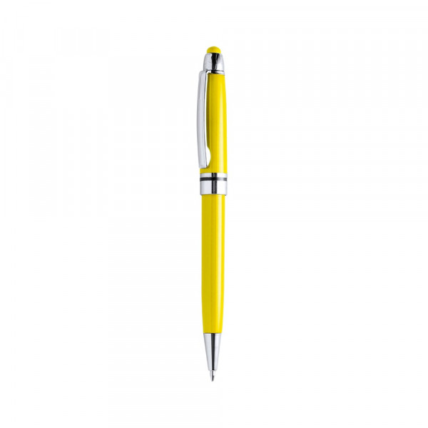 Balpen in kleurig ontwerp, met drukmechanisme en chromen details en metalen clip. Jumbo blauwe inkt vulling.