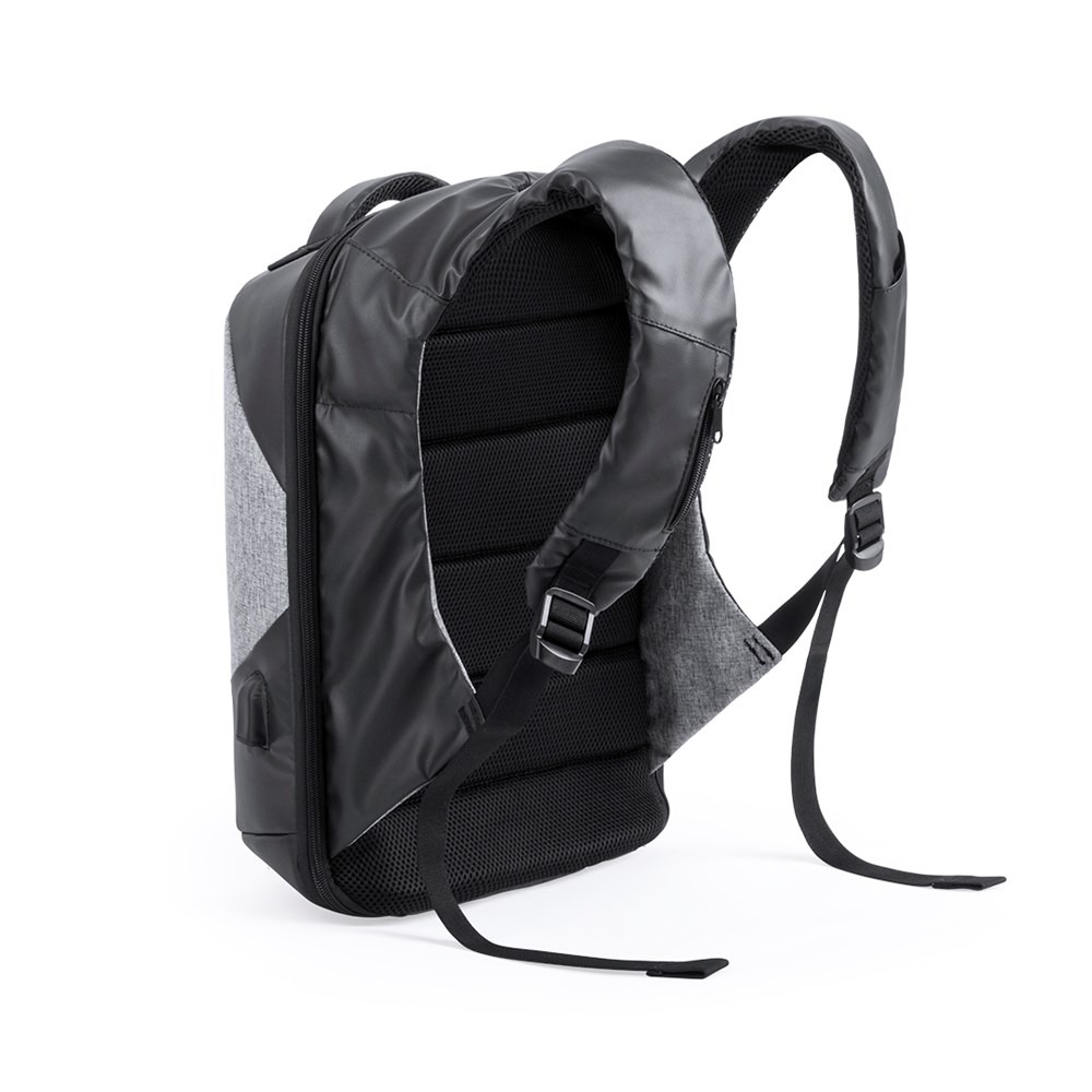 Anti diefstal rugzak. Waterproof, in high quality nylon, snij- en weerbestendig. Anti diefstal zak op de rug, voor waardevolle spullen. Het binnenste compartiment is voorzien van een USB output zodat je er een powerbank op kunt aansluiten. Er zit natuurlijk een USB kabel bij van 1 meter. Verder aan de binnenzijde een vak voorzien van straps om bijvoorbeeld je laptop goed op z´n plaats te houden bij gebruik van deze rugzak. De rugzak kan 180 graden worden opengemaakt, zodat deze makkelijk vol te laden is. De rugzak is geschikt voor laptops tot 15 inches, en tablets tot 10 inches. De schouder banden zijn gevoerd zodat ze meer draagcomfort geven