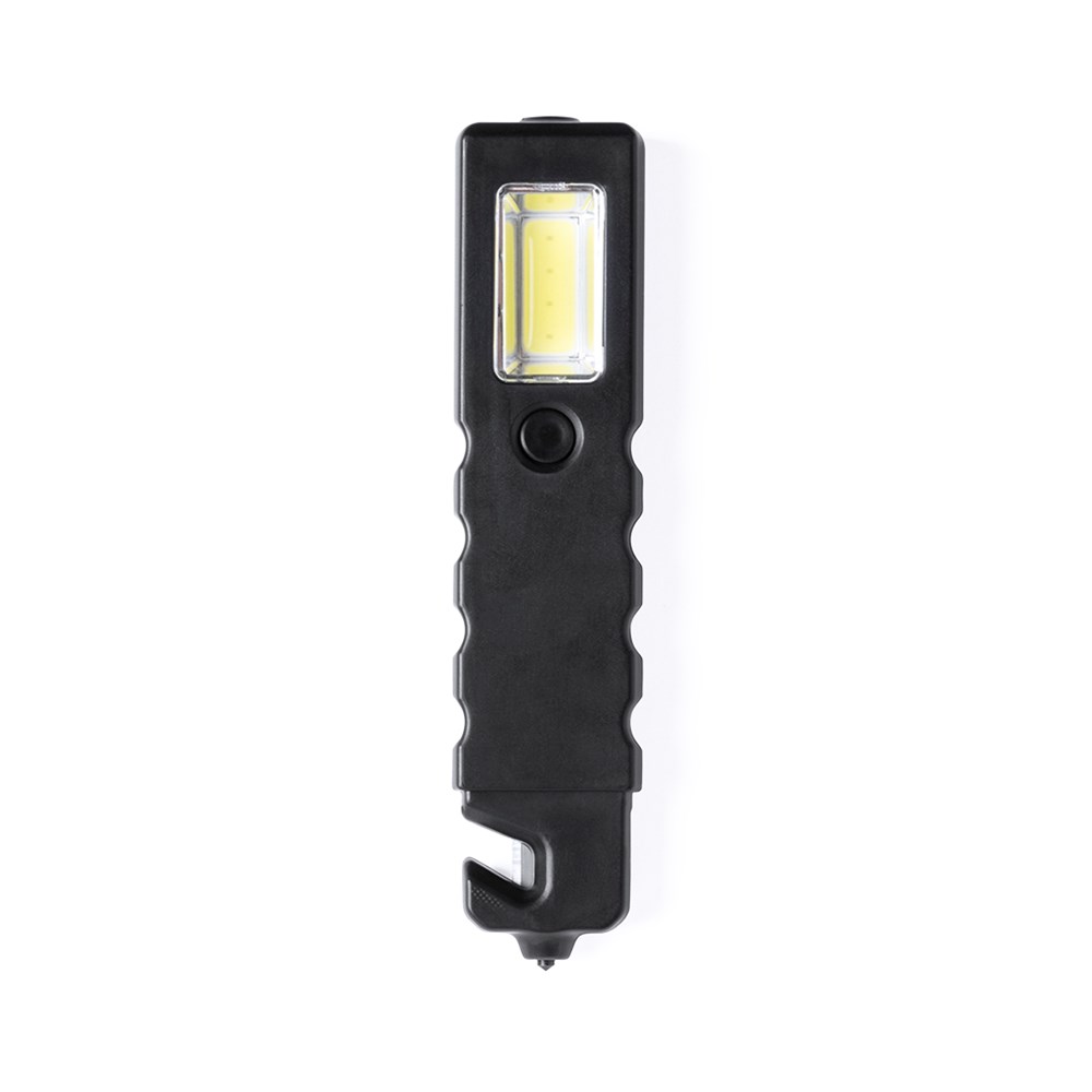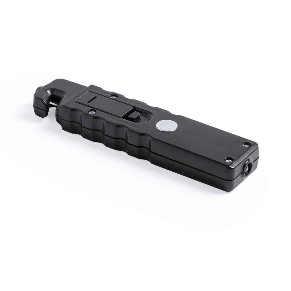 3-in-1 noodhamer. Bevat LED-zaklamp en 4 COB-lampen met 3 verlichtingsopties. Met magnetisch oppervlak en gordelmes.