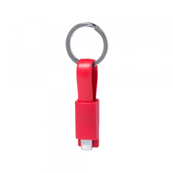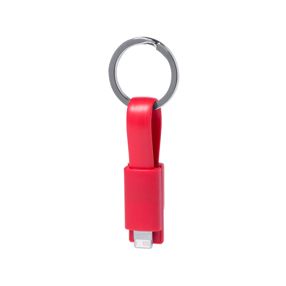 USB-sleutelhangerlader in diverse kleuren. Met dubbele micro USB / lightning verbinding. Gepresenteerd in designverpakking.