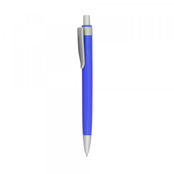Balpen in tweekleurig design met zilvergrijze details en een gladde body in diverse kleuren. Met originele clip in bijpassende kleur. Blauwe inkt.