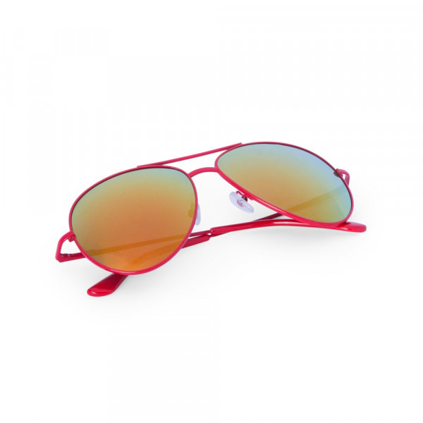 Zonnebril in pilotenstijl met UV400-bescherming. Met metalen frame in diverse kleuren en gespiegelde glazen in bijpassende kleur.