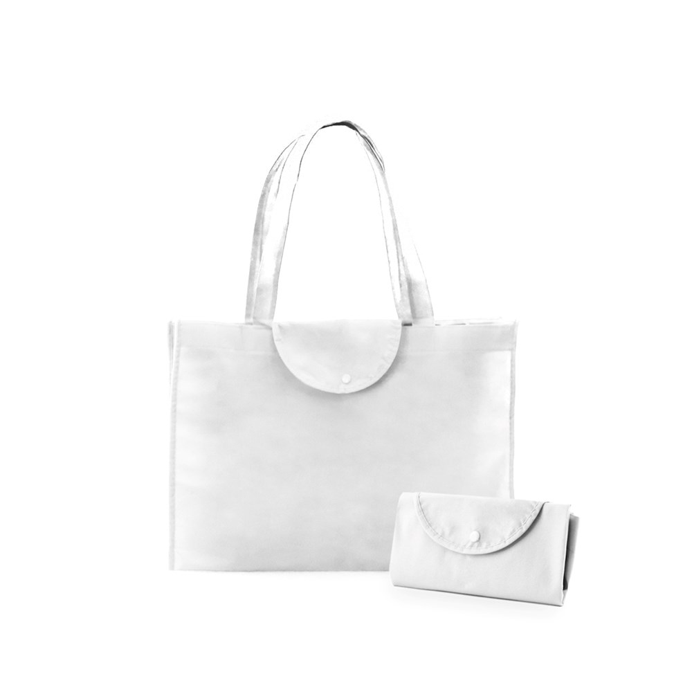 Opvouwbare non-woven tas van 90 g / m2, in verschillende kleuren. Met medium grootte hengsels van 56 cm, klep met bijpassende kleurknoopsluiting, versterkte inzetstukken met bies en gestikte afwerking. Kleine vouwmaat en gewicht tot 9 kg.