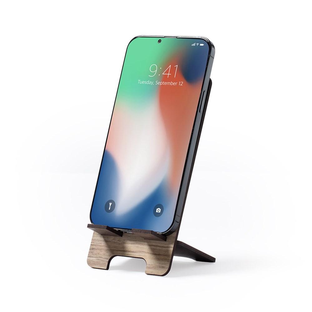 Smartphonehouder met geïntegreerd fotolijstje. Gemaakt van natuurlijk hout, met originele tweekleurige afwerking. Groot merkoppervlak, eenvoudig te monteren en met Made In Europe-logo.