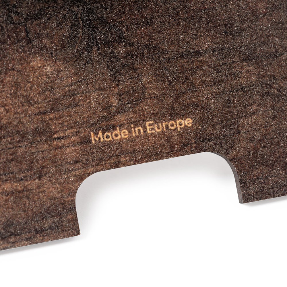 Smartphonehouder met kerstboomdesign, gemaakt van natuurlijk hout en originele tweekleurige afwerking. Gemakkelijk te monteren en met Made In Europe-logo.