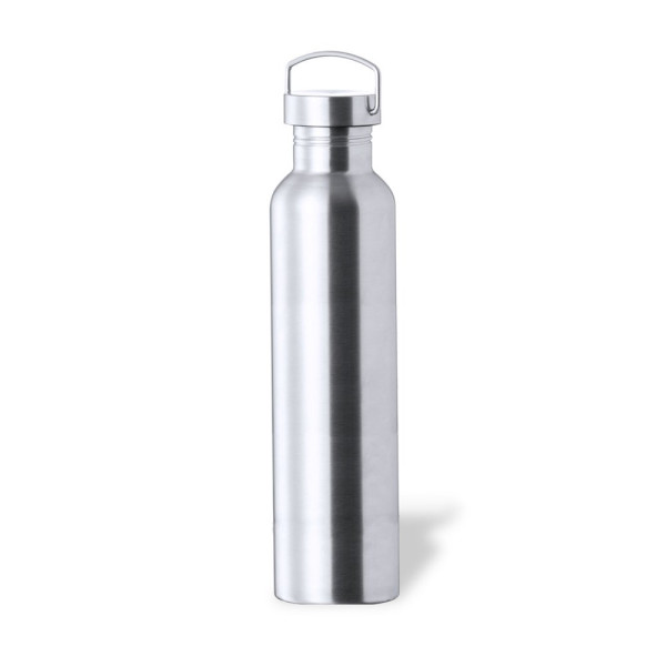 Jumbo fles met een inhoud van 1,5 l, gemaakt van roestvrij staal met glanzende afwerking. Met bijpassende, originele schroefdop van roestvrij staal en geïntegreerd handvat. BPA-vrij en gepresenteerd in een individuele doos met kraft ontwerp.Handleiding beschikbaar in het Spaans en Engels.