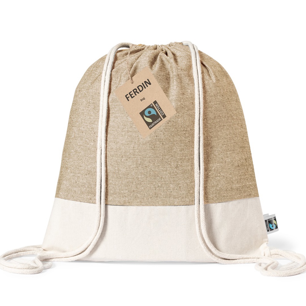 Nature line tas met trekkoord, gemaakt van katoen 140g/m2. Met Fairtrade-certificering, een alternatief voor het conventionele handelssysteem dat de ontwikkeling van volkeren en de strijd tegen armoede nastreeft. Gestikte afwerking en bijpassende katoenen touwtjes met naturelkleurige basis en bovenfront verkrijgbaar in zwart en natuurlijke kleuren. Inclusief Fairtrade-label en hangtag in gerecycled karton.