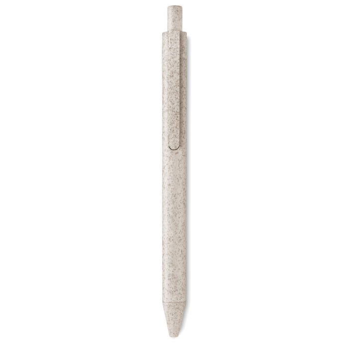 Balpen met drukmechanisme gemaakt van 50% tarwestro/ 50% ABS kunststof. Blauwe inkt.