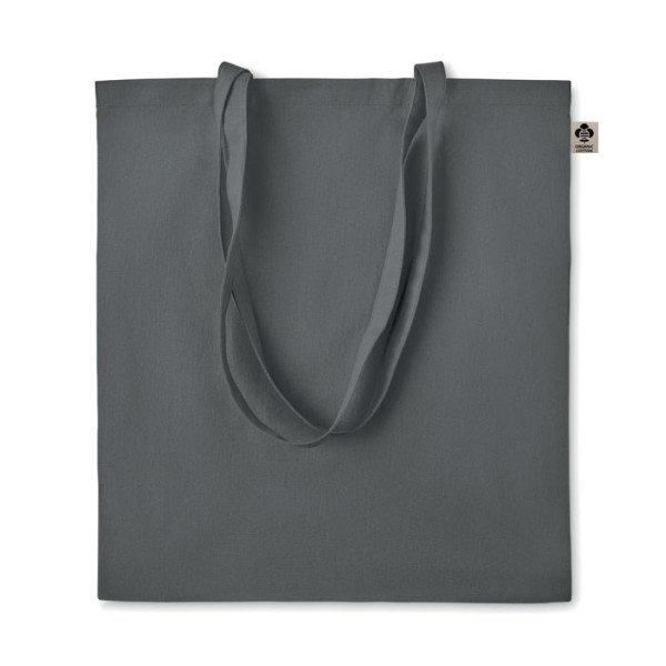 Boodschappentas van organisch katoen met lange hengsels. Een klassiek tote/draagtasontwerp gemaakt om je dagelijkse boodschappen of andere items in te vervoeren. Draag de tas in je handen of over je schouder met de lange hengsels. Gemaakt van 100% natuurlijk organisch katoen 140 gr / m².