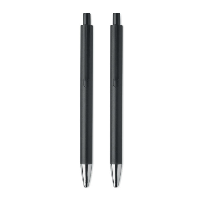 Gerecycled aluminium pennenset met 1 balpen blauwschrijvend en 1 pen grafiet inktloos. In gerecycled papieren doosje.