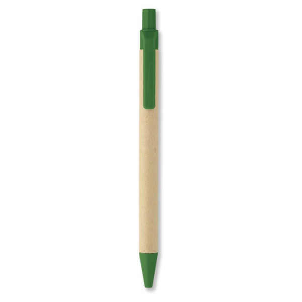 Balpen met drukmechanisme, gerecycled papieren grip en PLA-onderdelen (van 100% biologisch afbreekbare maïs). Blauwe inkt.